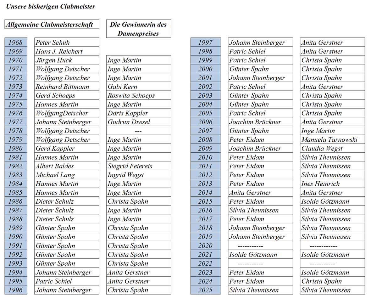 Clubmeistertabelle