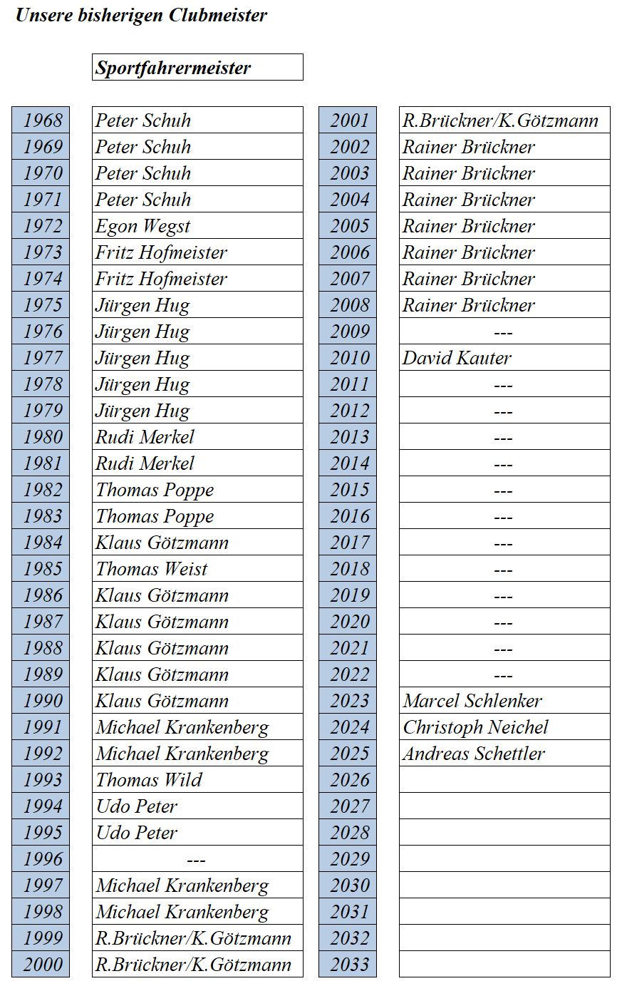 Clubmeistertabelle