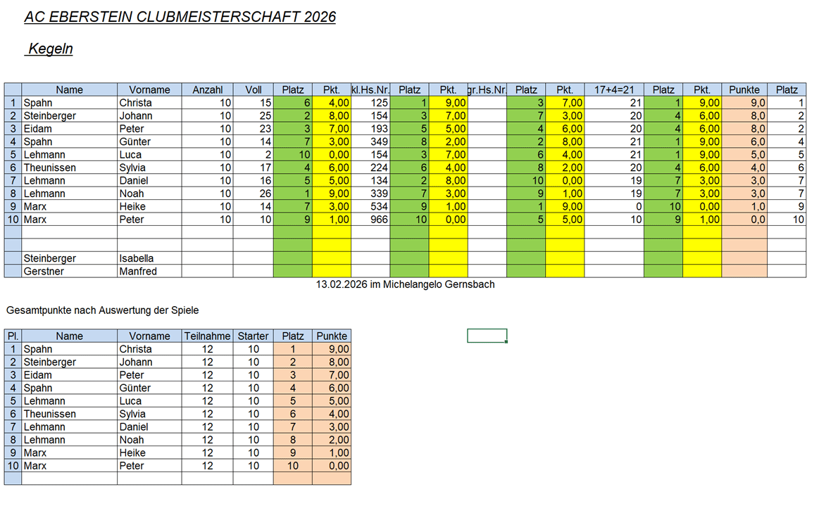 Ergebnisse Allgemeine Clubmeisterschaft 2026