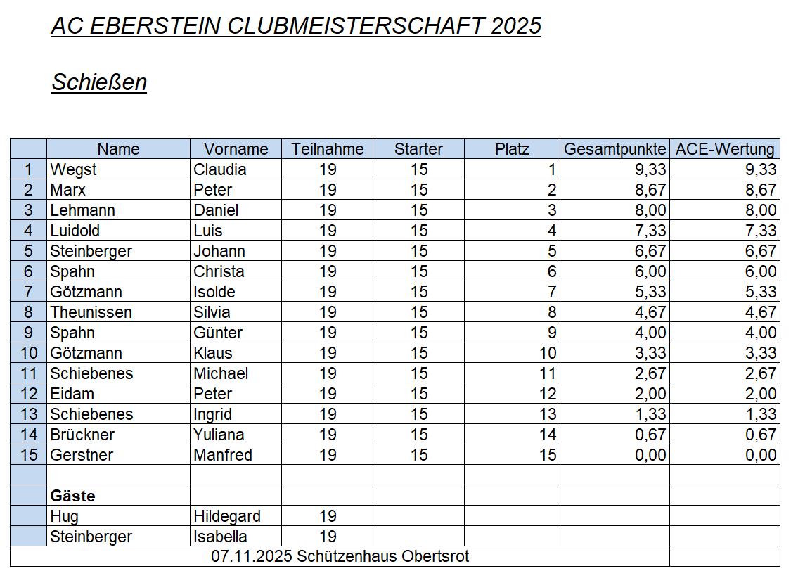 Ergebnisslisten zum Schießen